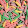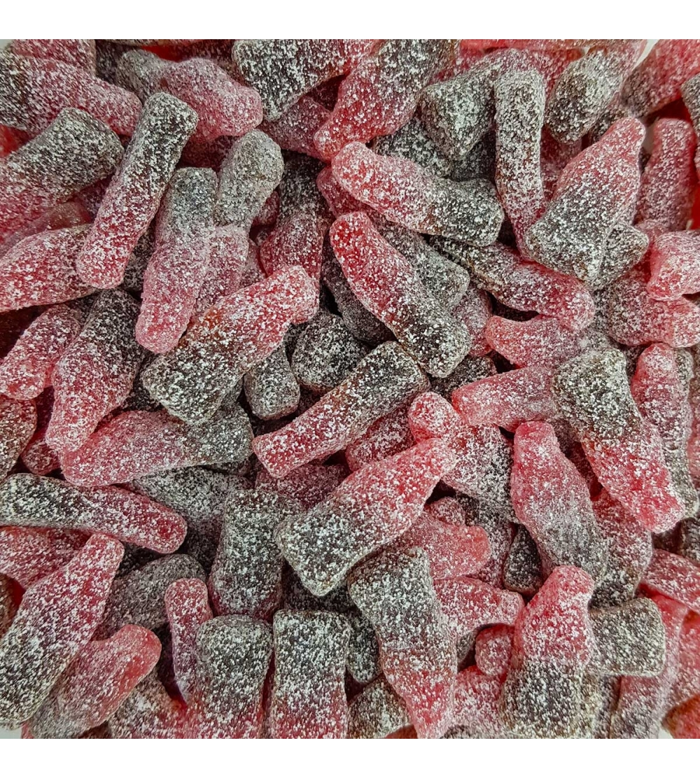 Ingrédients : Sirop de glucose, sucre, eau, gélatine de boeuf halal, amidon modifié de pomme de terre, acidifiants : E330, E270, E296, arôme, colorants : E150c, E163, E129, E160a, agent d’enrobage : cire de carnauba. Sans Gluten.