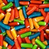 Ingrédients : Sirop de glucose, sucre, eau, gélatine de bœuf halal amidon modifié de pomme de terre, acidifiants : E270, E330, arômes, agents d’enrobage : huile végétale (palme), E901, E903, arômes, colorants : E150c, E100. Sans Gluten.